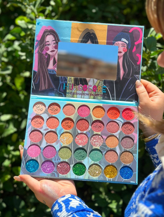 پالت میکاپ 35 رنگ HUACOCORE شامل 35رنگ دارای سایه شاین و مات پیگمنت قوی ماندگار و بدون ریزش طیف رنگی گسترده و کاربردی بسته بندی جذاب مناسب برای استفاده روزانه و مهمانی ها دارای آینه